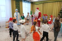 С появлением Деда Мороза начался настоящий праздник с песнями, танцами и играми, хороводами вокруг ёлки. После представления дети вместе с Дедом Морозом и Снегурочкой сфотографировались. У нас получился радостный, весёлый праздник, где всем детям было интересно и весело.