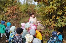 Дети подготовительной группы вместе с воспитателями вышли на экскурсию в посадку. Цель экскурсии – формирование правильного отношения ребёнка к природе его окружающей, к себе и людям, как к части природы.
