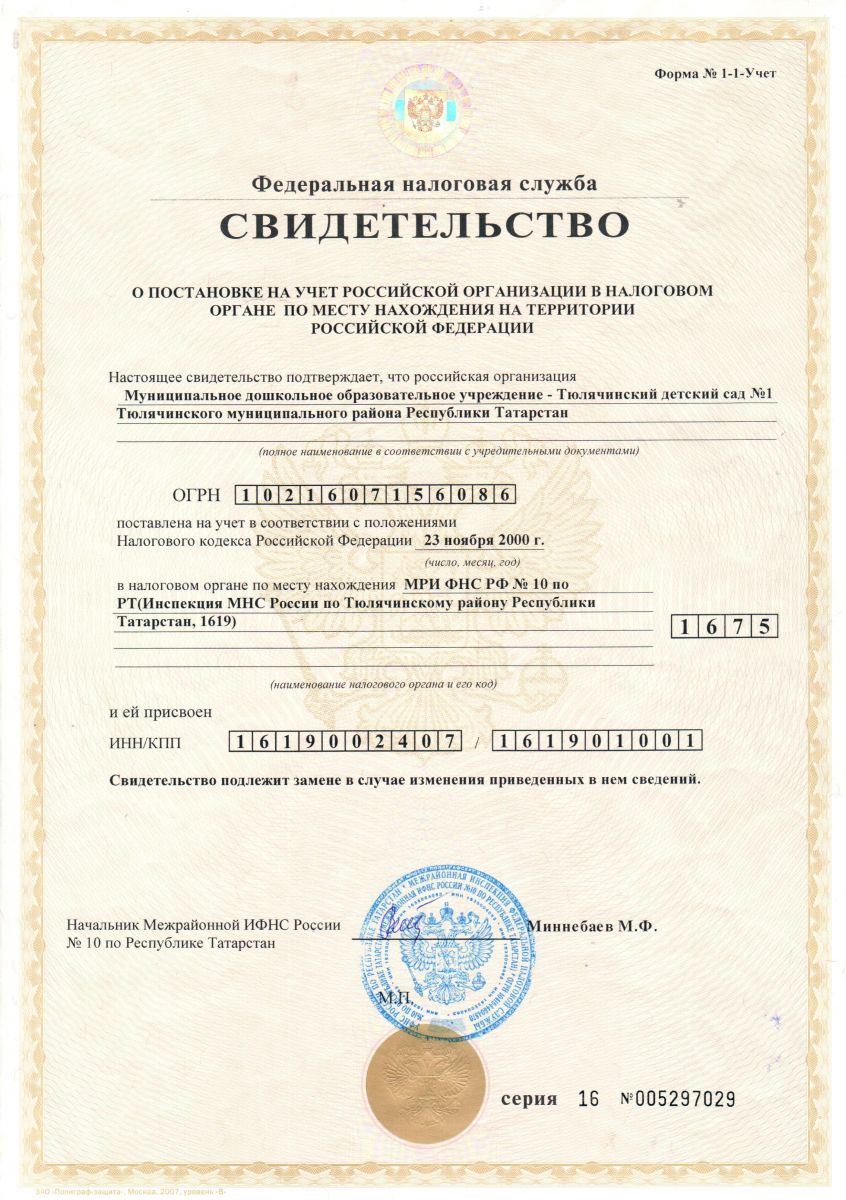 Короткое название: МБДОУ- Тюлячинский детский сад №1 Тюлячинского муниципального района РТ