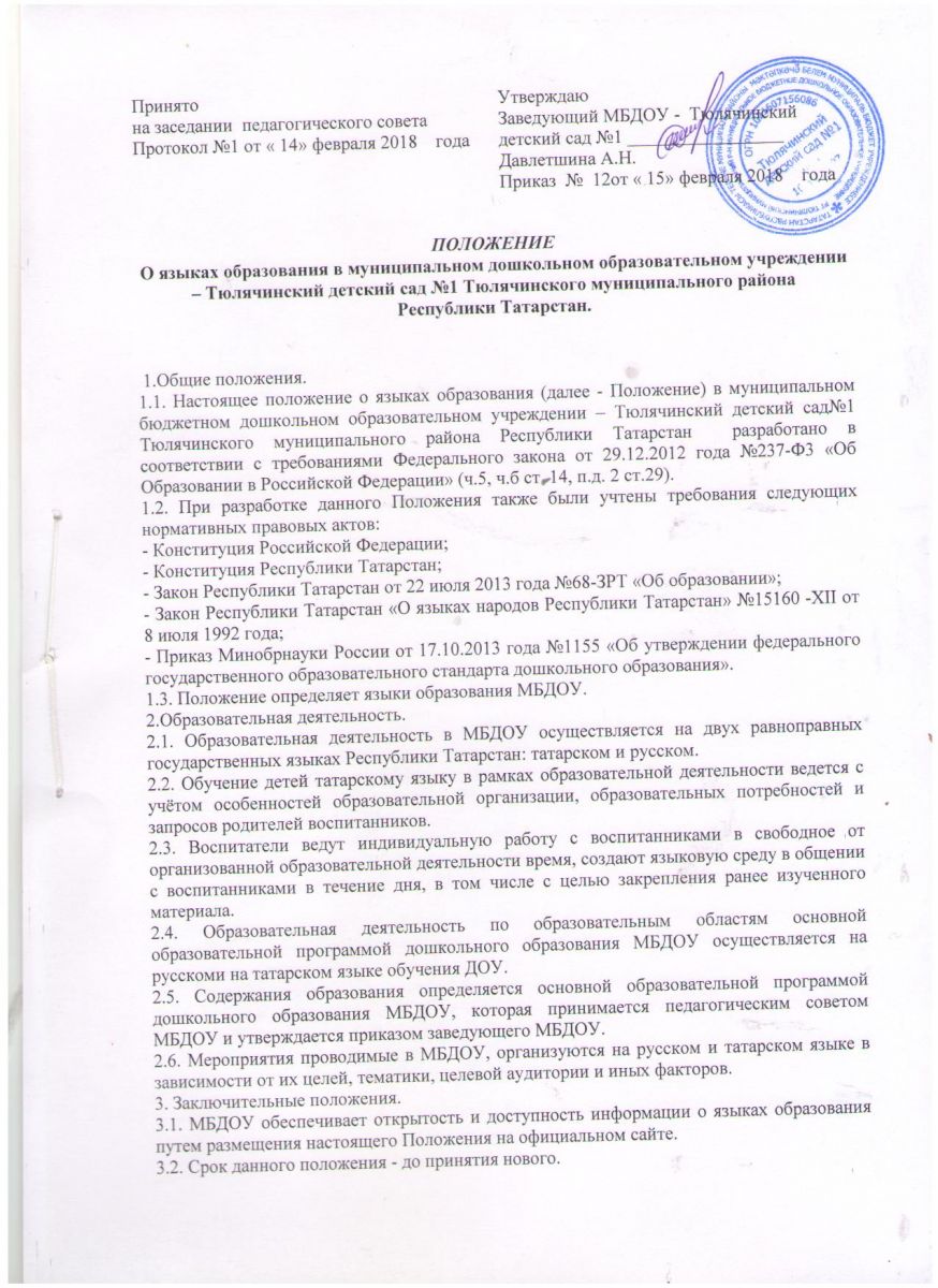 Положение о педагогическом совете/Педагогик киңәшмә турында нигезләмә
