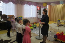 Сегодня, 5 декабря в МБДОУ-Тюлячинский детский сад №2 прошел очный тур районного смотра-конкурса среди воспитателей и дошкольных образовательных учреждений Тюлячинского муниципального района по обучению детей безопасному поведению на дороге «Зелёная волна». В конкурсе приняла участие воспитатель 1-й квалификационной категории Юсупова Г.Ф., она провела театрализованное представление с воспитанниками подготовительной группы на тему «Маша учит правила дорожного движения». Конкурсные материалы оценивали методист отдела образования по дошкольному образованию Саетова А.Н. и ведущий специалист организационно-аналитического отдела ГКУ “Дирекция финансирования научных и образовательных программ БДД РТ” Ягафарова Г.Н.