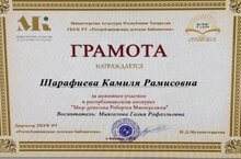 "Роберт Миңнуллинның балачак дөньясы" республика конкурсына йомгак ясалды. Конкурска Татарстан Республикасының 26 муниципаль районыннан 133 эш тәкъдим ителгән. Безнең Теләче 3нче номерлы балалар бакчасыннан үз яшьтәшләре арасында "Иң яхшы шигырь сөйләүче" номинациясендә катнашып дипломга лаек булды.