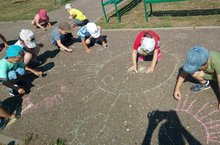 Балалар төрле уеннар уйнадылар, асфальтта рәсем ясадылар, табышмаклар чиштеләр.