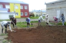 Бүген балалар бакчасы территориясен һәм аның янәшәсендәге территорияне җыештыру буенча өмә үткәрелде.