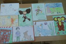 Бүген мәктәпкәчә яшьтәге төркем балалары күңелле һәм кызыклы мультфильмнар карадылар “Нечкә бил”, “Чебурашка”, соңыннан шул мультфильмнар буенча рәсем ясадылар.