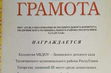 муниципальное бюджетное дошкольное образовательное учреждение - Ленинский детский сад Тюлячинского муниципального района РеспубликиТатарстан