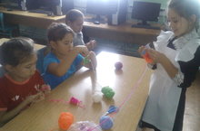 Балалар иҗат үзәгенең “Балачак”, “Бәйләү иле” түгәрәкләренә йөрүче укучылар, өстәмә белем бирү педагогы Шаипова Раъно Исамовна җитәкчелегендә, якынлашып килүче конкурсларга катнашу максатыннан төрле материаллардан кул эшләре әзерлиләр.