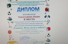 Ученица 4 класса Верхнекибякозинской СОШ Гильмутдинова Мадина участвовала во II региональном конкурсе творчества физкультурно- спортивной направленности "Главное, Федя, воля к победе!" и заняла 2 место. Поздравляем её и желаем больших успехов в будущем!