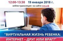 19 января 2018 года с 12:00-13:30 проводится Республиканское родительское интернет-собрание по теме "Виртуальная жизнь ребенка: друг или враг?". Онлайн трансляцию будет вестись на сайте киу.рф.