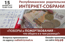 Бүген, 7 нче декабрь көнне чираттагы республикакүләм ата-аналар җыелышы була. Җыелыш онлайн - форматта үтә. Җыелышта катнашу өчен алдан теркәлү үтәргә кирәк. // 7 декабря 2017 года состоится ежегодное родительское собрание. Тема Республиканского родительского собрания в 2017 г. «Как помочь ребенку определиться с профессией, учитывая его способности и предпочтения». В рамках мероприятия будут обсуждаться ключевые вопросы самореализации и самоопределения ребенка и роль родителей в этих процессах. Мероприятие проводится в онлайн-формате с возможностью подключения в сети интернет. Для этого необходимо зарегистрироваться заранее.
