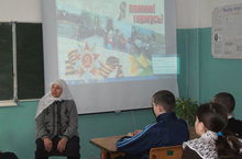 7 февраля состоялась встреча с ветераном тыла – Мардановой Альфинур апа. Она рассказала ученикам о своих детских годах во время ВОВ. Её рассказ больше представлял воспоминания своей матери об отце, о трудностях деревенской жизни в годы войны. Она также читала собственные стихи, связанные с войной, отвечала на интересующие детей вопросы.