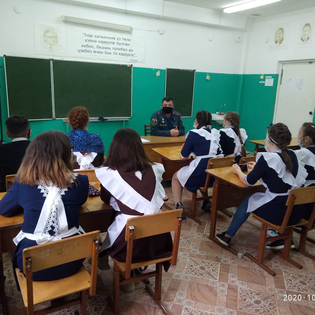 23 октября 2020 года старшим инспектором МОНД и ПР по Сабинскому и Тюлячинскому муниципальным районам УНД и ПР ГУ МЧС России по РТ майором внутренней службы Тимерхановым Л.М. в МБОУ-Саушской основной общеобразовательной школе Тюлячинского муниципального района РТ в начальных и старших классах (1-4; 5-9 классы) проведены уроки на противопожарные темы, а именно: "Что такое МЧС", "История образования МЧС", "Род деятельности сотрудников и работником МЧС"