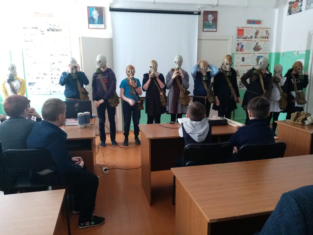 4 марта в школе проводилось открытый урок по ОБЖ по теме ГО. Ученики ещё раз напомнили действия при ЧС. На практической части прошли состязания по одеванию противогаза и по оказанию первой мед. помощи