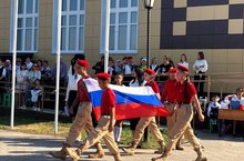 Сегодня на праздничной линейке, посвященной Дню Знаний знаменная группа в составе отряда "Юнармия" Тюлячинской средней общеобразовательной школы провела церемонию поднятия Государственного флага Российской Федерации, Республики Татарстан и флага Тюлячинского муниципального района. Руководитель начальник штаба Юнармии Тюлячинского муниципального района Гатиятов Расип Рашитович.