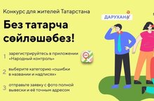 Татар телендәге элмә такталарда һәм мәгълүмати табличкаларда хаталарны ачыклауга җәлеп итү бәйгесенә барыбыз да кушыла ала. 1-нче сентябрьгә кадәр уза торган бәйге Татарстанның дәүләт хезмәтләре порталында теркәлгән һәр кешесе катнаша алачак. Бәйгенең Нигезләмәсе
