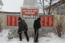 Бүген 5 класс укучылары Мәктәп алды "Алар Ватан өчен көрәштеләр" обелискасын кардан чистарттылар.