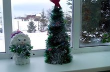 Ученики 3 го класса в целях украшения своего класса нарядили ёлку, каторую сами и сделали.