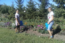 Бүген ял һәм хезмәт лагерына йөрүче укучыларыбыз бакчада чәчәкләрне күчереп утырттылар, чүп утадылар.