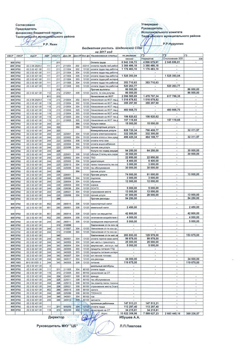 Бюджетная роспись на 2017 год МБОУ - Шадкинская СОШ Тюлячинского муниципального района
