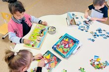 Пазлы относятся к одним из лучших развивающих игр и занятий. Это такая деятельность, которая укрепляет основные навыки детей и формирует их кругозор. Наши ребята очень любят эту увлекательную игру, они с большим интересом собирают пазлы, проявляя при этом терпение и усидчивость. В играх в пазлы у детей развиваются внимание, мышление, мелкая моторика также дети учатся взаимодействовать друг с другом, умению уступать и не ссорится.