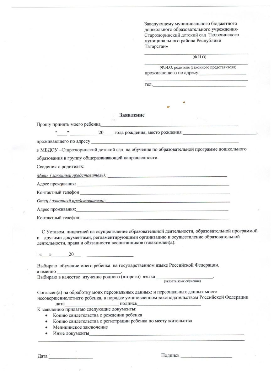 Образец заявления о порядке приема/ Кабул итү турында гариза үрнәге