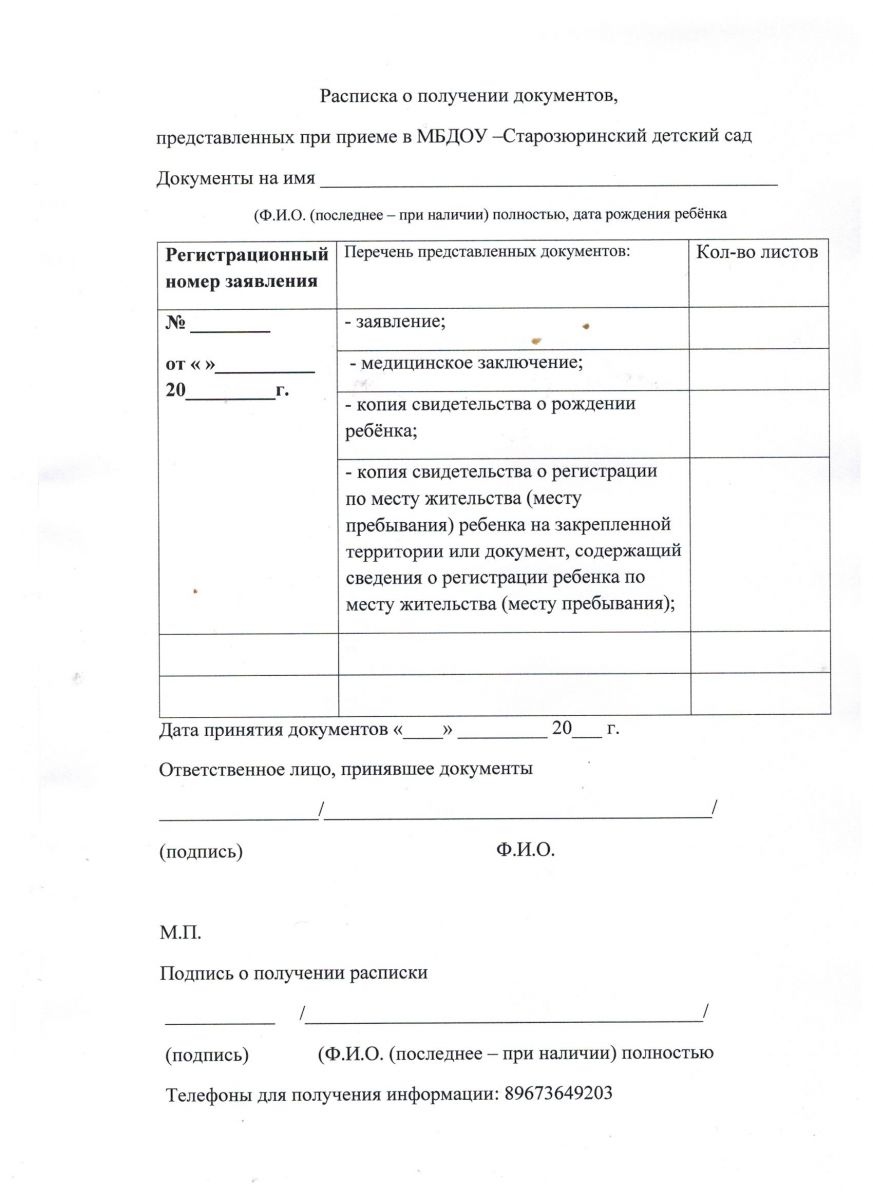 Образец расписка в получении документов/ Документларны алу турында расписка үрнәге