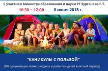 8 июня 2018 года состоится Республиканское онлайн родительское собрание на тему: "Каникулы с пользой". На повестке дня планируется рассмотрение вопросов организации летнего отдыха детей в 2018 году. Онлайн трансляция организуется на сайте Казанского инновационного университета имени Тимирясова http://киу.рф/.