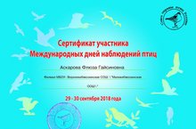 В конце сентября – начале октября традиционные Международные дни наблюдений птиц. Их цель - привлечь внимание людей к миру птиц, к проблемам сохранения мест их обитания и охраны природы в целом.Смысл акции - узнать, сколько и каких птиц за определенный промежуток времени можно встретить в разных уголках континента. Учащиеся Малокибякозинской основной школы охотно присоединились к акции и под руководством учителя биологии Аскаровой Ф.Г. считали пернатых нашей местности. Результаты такого массового одновременного учета имеют большое научное значение.29 сентябрь- 1октябрь аралыгында Халыкара кошларны исәпкә алу көннәре үткәрелде. Чараның максаты- кошлар дөньясына кешеләрнең игътибарын җәлеп итү, кошларны саклау проблемаларына кызыксыну уяту.Акциянең әһәмияте- билгеле бер вакыт эчендә үзебезнең төбәктәге кошларны исәпләү. Чарага биология укытучысы Әскарова Ф.Г. җитәкчелегендә Кече Кибәхуҗа төп мәктәбе укучылары да бик теләп кушылдылар безнең яктагы кошларны исәпләделәр һәм санау нәтиҗәләрен үзәккә тапшырдылар.Нәтиҗәләр фәнни әһәмияткә ия. -