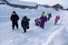 Зимние игры на свежем воздухе. Сегодня ученики Большекибякозинской начальной школы собрались после уроков играть на свежем воздухе. Зима - отличное время года для укрепления здоровья. Дети играли в интересные, подвижные игры, с удовольствием катались с горки на санках. Ученики остались довольными сегодняшним днем