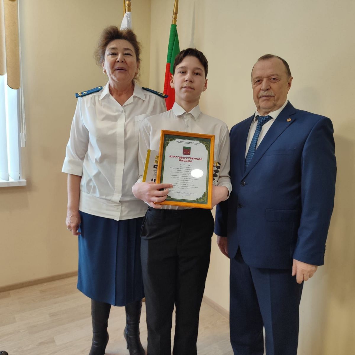 26 января состоялось награждение победителей конкурса сочинений «С чего начинается для меня Родина». Этот конкурс был организован Прокуратурой Тюлячинского района. Среди победителей были и наши ученики. Обучающиеся МБОУ-Верхнекибякозинской СОШ Тюлячинского района с интересом участвовали в конкурсе. Лучшими работами стали сочинения ученицы 6 класса Гильмутдиновой Мадины, 1 место, ученика 8 класса Галимова Ильфара, 2место. Глава Тюлячинского муниципального района Хазипов Назип Накипович и прокурорТюлячинского муниципального района Нурия Нургаязовна Сабирзянова от всей души поздравили победителей, пожелали ребятам дальнейших творческих успехов, поблагодарили за активную жизненную позицию.