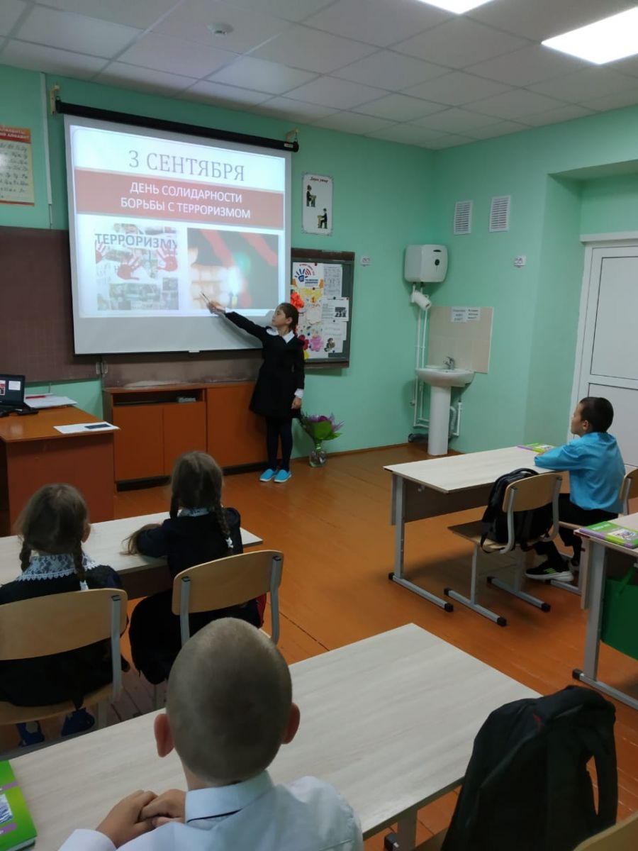 3 сентября в МБОУ -Верхнекибякозинская СОШ прошел классный час на тему « День солидарности в борьбе с терроризмом»". 3 сентября - одна из памятных дат в России, которая носит название День солидарности в борьбе с терроризмом. Эта дата связана с трагическими событиями в городе Беслане 1-3 сентября 2004 года, где в результате террористического акта в школе террористы трое суток удерживали людей, половина которых погибли. На классом часе узнали, что такое терроризм, кто такие террористы, о трагедии в школе Беслана, ознакомились учащихся с основными правилами поведения в условиях теракта. В современном мире любого человека подстерегает множество опасностей, поэтому всегда быть готовым и действовать правильно.