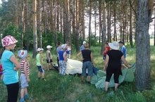 Сегодня в лагере мы учились ставить палатки и повторяли законы школы выживания.