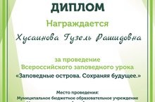 25 февраля учитель географии Хусаинова Гузель Рашидовна провела Всероссийский заповедный урок "Заповедные острова. Сохраняя будущее". -