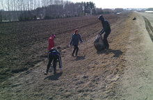 Ученики, учителя и весь персонал с воодушевлением раскидывали куски нерастаявшего снега, убирали мусор, прошлогоднюю листву-благоустраивая территорию своей школы.