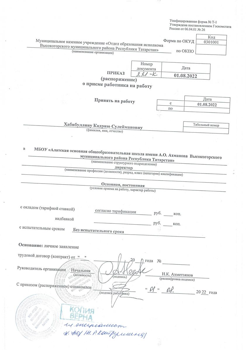 Муниципальное бюджетное общеобразовательное учреждение "Алатская основная общеобразовательная школа им. А.О.Ахманова Высокогорского муниципального района Республики Татарстан"/Татарстан Республикасы Биектау муниципаль районы "А.О. Ахманов исемендәге Алат төп гомуми белем мәктәбе" муниципаль бюджет гомуми белем учреждениесе