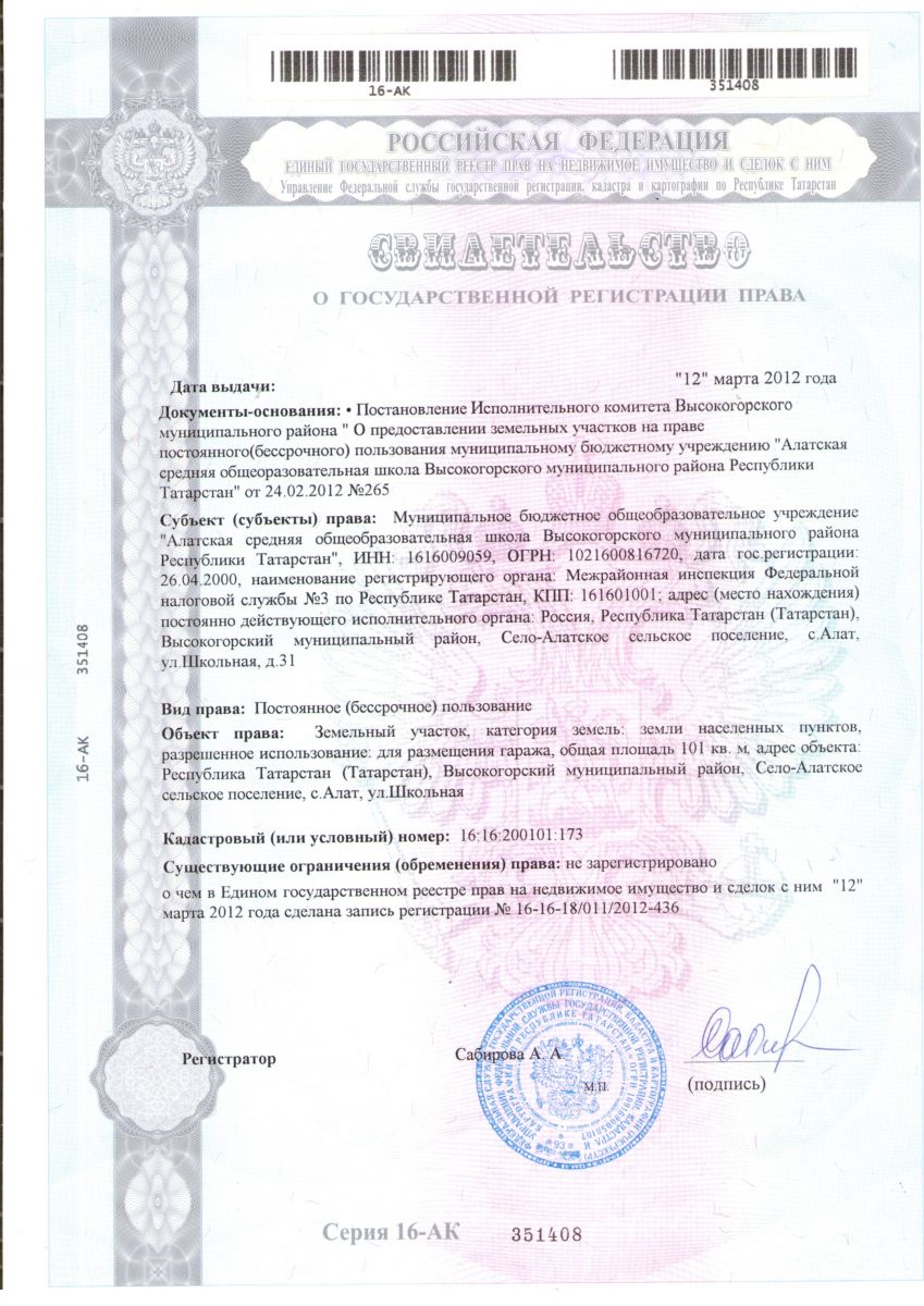 Адрес: 422721, РТ, Высокогорский район, с. Алат, ул. Школьная, д.31А