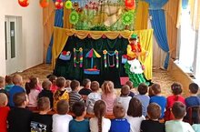 У нас в гостях Альметьевский куколный театр с музыкальной сказкой "Веселый детский сад" .А сказка начиналось так: "Было у козы Маруси два веселых гуся, два утенка, два цыпленка и поросенок....." Дети с удовольствием смотрели волшебную сказку. /Бүген бездә Әлмәт курчак театры узләренең куңелле спектаклләре белән кунакта булдылар.