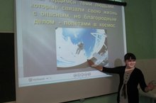 Сегодня 50- летие выхода человека в космос. Учащиеся познакомились с биографией легендарного космонавта Алексея Архиповича Леонова, а также с основными моментами подготовки к выходу в открытый космос. Прослушали рассказ о полёте на Луну. 21.03.2015