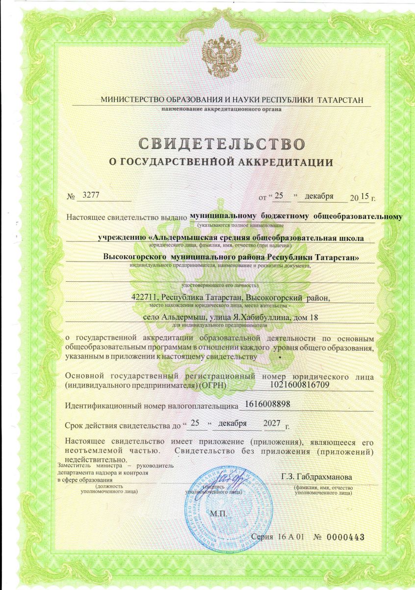 муниципальное бюджетное общеобразовательное учреждение «Альдермышская средняя общеобразовательная школа Высокогорского муниципального района Республики Татарстан"