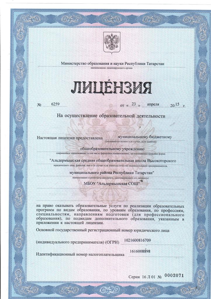 муниципальное бюджетное общеобразовательное учреждение «Альдермышская средняя общеобразовательная школа Высокогорского муниципального района Республики Татарстан"