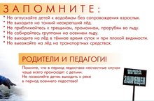 Уважаемые родители, будьте бдительны на льду и на воде. В осеннее время запрещается выход на тонкий лёд в водоёмах. Не оставляйте детей одних, без присмотра.