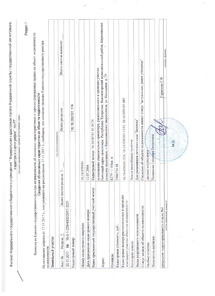 | Адрес: | 422737, Республика Татарстан, Высокогорский район, пос. Бирюлинского зверосовхоза, ул. Кольцевая, д. 29 |