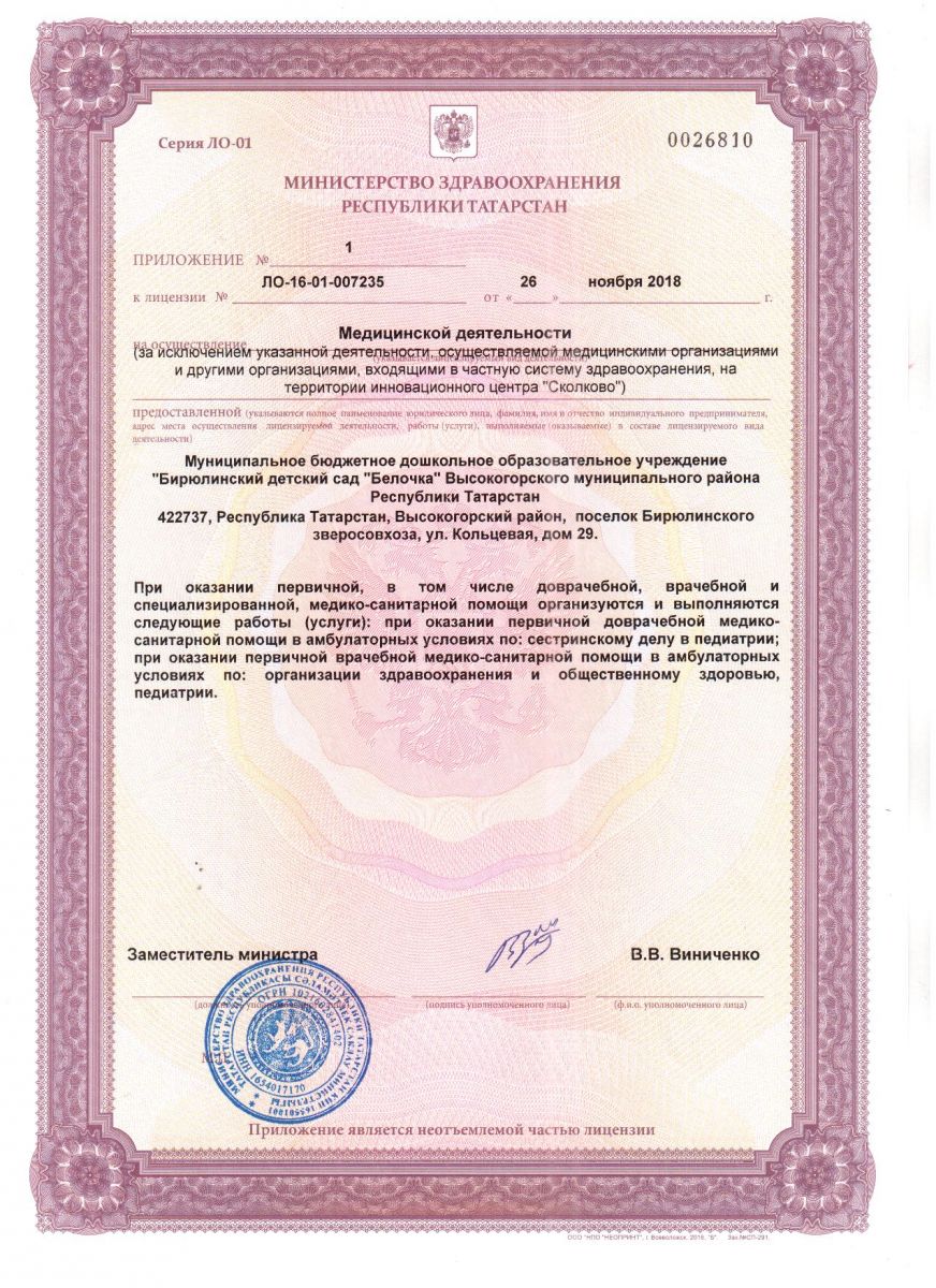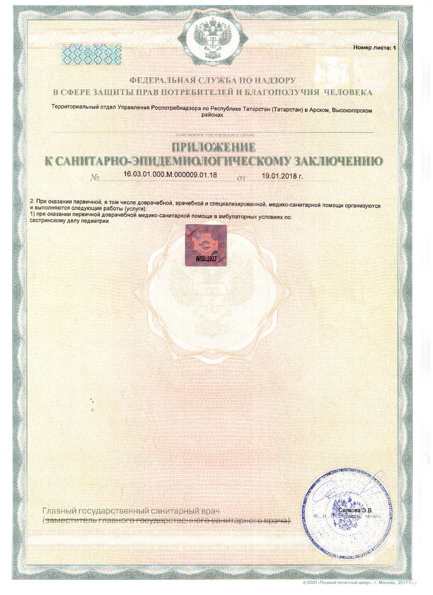приложение к санитарно - эпидемиологическому заключению на медицинскую деятельность
