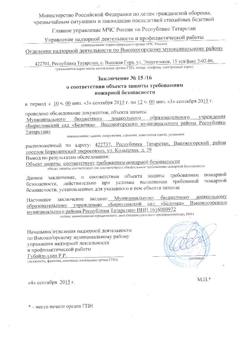 заключение о соотвествии объекта защиты обязательным требованиям пожарной безопасности