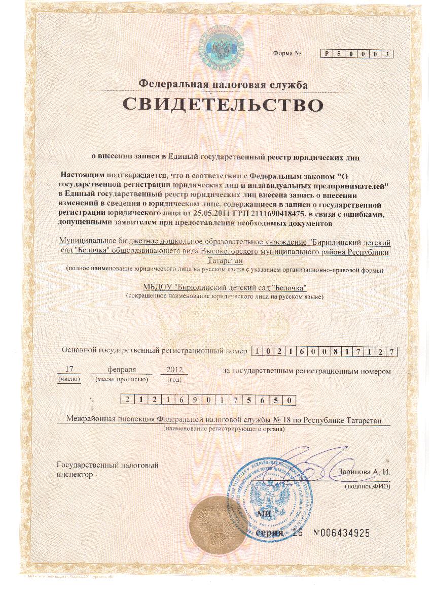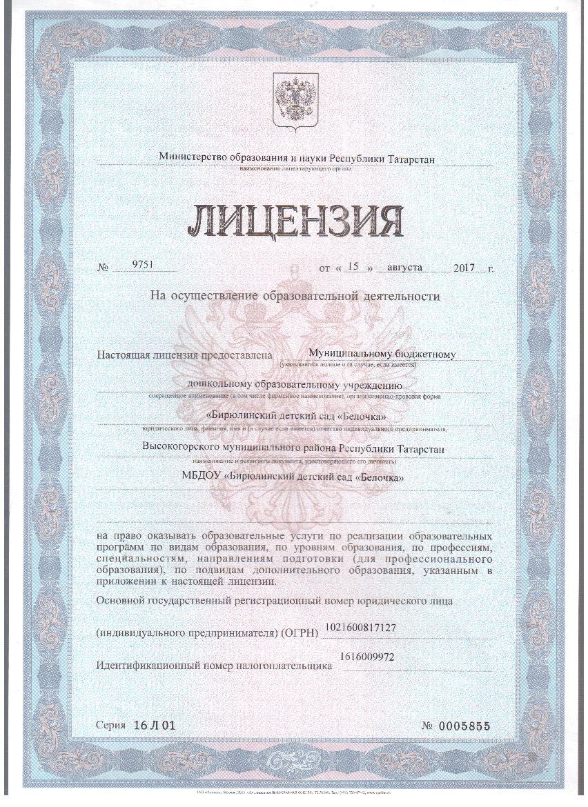 Муниципальное бюджетное дошкольное образовательное учреждение «Бирюлинский детский сад «Белочка» Высокогорского муниципального района Республики Татарстан
