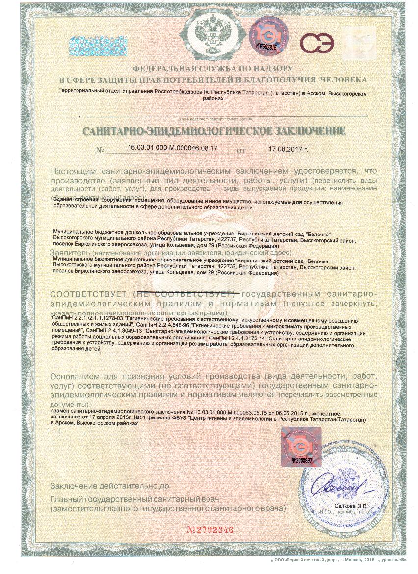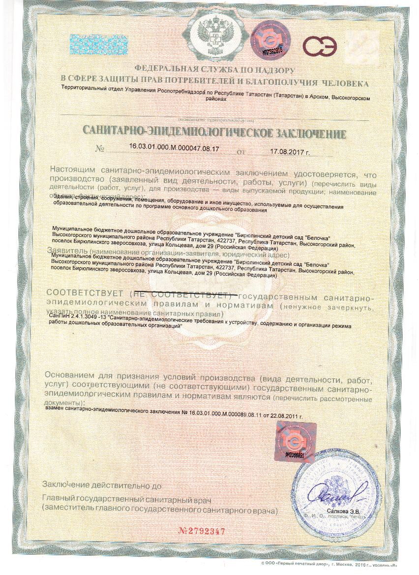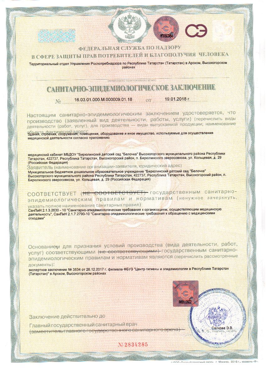 санитарно -эпидемиологическое заключение на основную образовательную деятельность