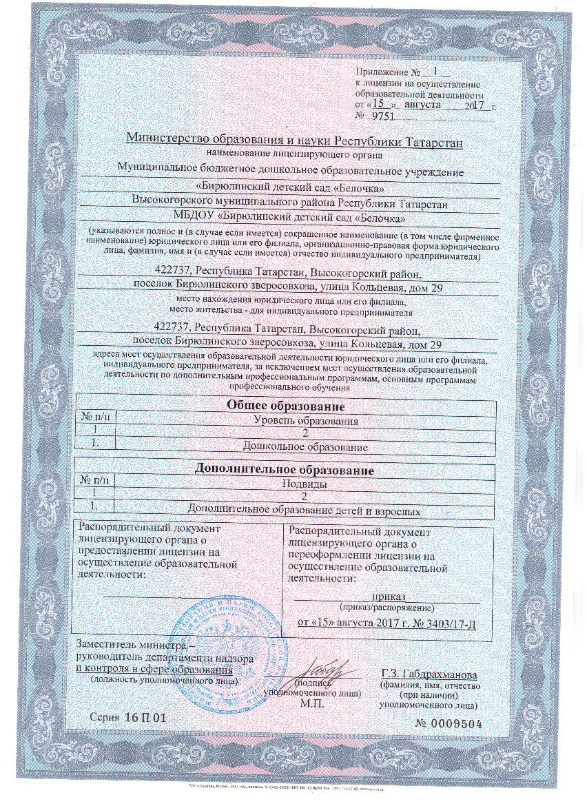 Лицензия на осуществление образовательной деятельности/Белем бирү эшчәнлеген тормышка ашыру лицензиясе/