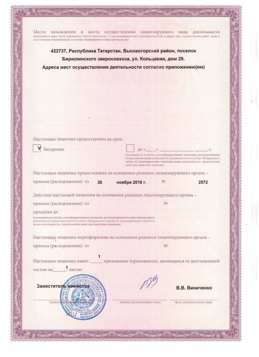| Адрес: | 422737, Республика Татарстан, Высокогорский район, пос. Бирюлинского зверосовхоза, ул. Кольцевая, д. 29 |