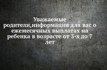 С 1 апреля 2021 года семьям, имеющим размер среднедушевого дохода, не превышающий величину прожиточного минимума на душу населения, установленную в РТ на дату обращения (ПМ на душу населения на 2021 год – 9 955 рублей), и уровень имущественной обеспеченности которых ниже уровня имущественной обеспеченности семьи (гражданина), установленного приложением к Закону Республики Татарстан от 8 декабря 2004 года № 63-ЗРТ, ежемесячная выплата на ребенка в возрасте от 3-х до 7 лет включительно будет предоставляться в размере: