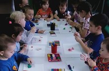 Балалар бакчасы сабыйлары кулга, кул чукларына массаж ясау күнегүләрен камилләштерү, эшләгән эшеңә соклану хисе тудыру, үз эшеңә җаваплылык хисе тәрбияләү максатыннан пластилин әвәләү шөгелендә кумэк эш башкарылды. Балалар бик матур гөмбәләр, күбәләкләр, агачлар әвәләделәр. Балалар бик теләп катнаштылар